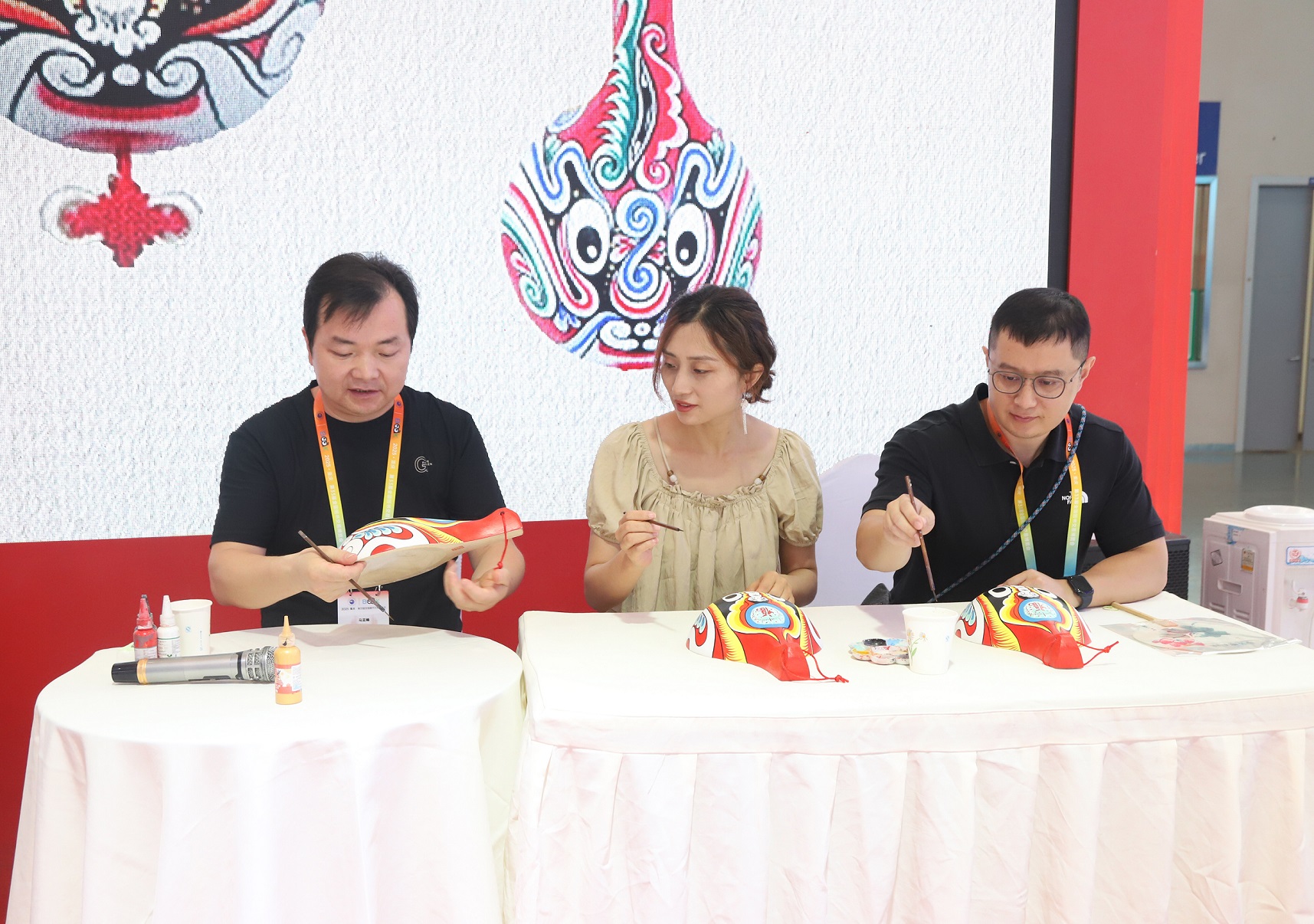 活动中,陕西省工艺美术大师、陕西社火脸谱代表性传承人马亚峰现场演示了脸谱的绘制技艺。